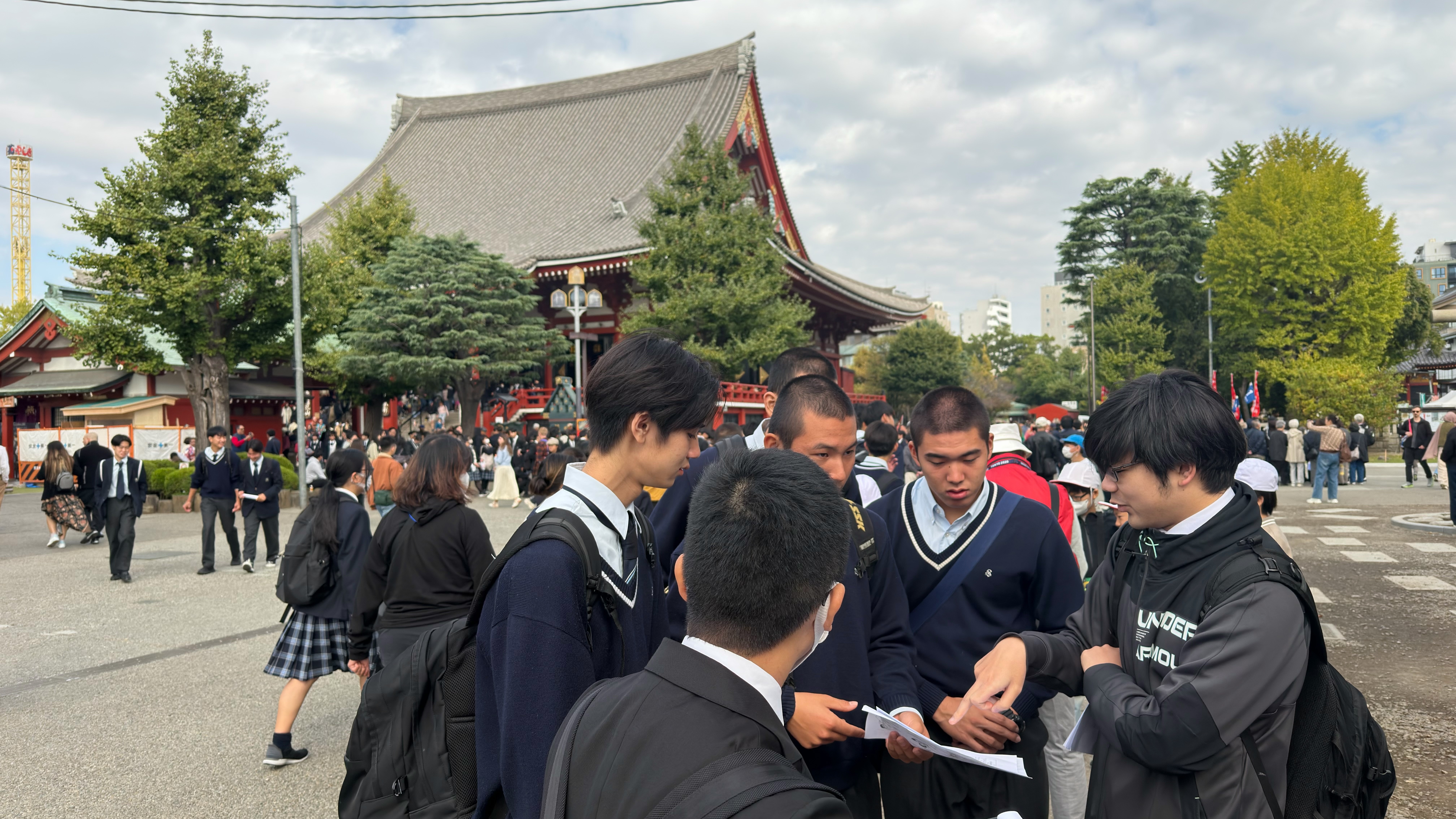 10月30日(木)、高校1年生および2年生が地域探究を実施しました。 1年生は上野エリア、2年生は浅草エリアをそれぞれ訪れ、グループごとにさまざまな場所を巡りました。 今回の地域探究を通して、生徒たちは普段の授業だけでは得られない地域の魅力や歴史についてより一層理解を深めることができました。