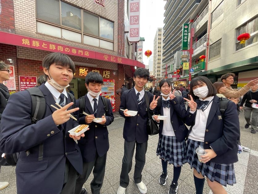 本日、文理進学クラスは研修旅行2日目を迎えました。 フォトロゲイニングや地域探究を通して神戸の町を巡り、その歴史の歩みについて理解を深めることができました。 フォトロゲイニングでは、各班がルートを真剣に話し合い、10か所以上のスポットを巡った班も複数見られました。限られた時間の中で作戦を立て、協力しながら行動する姿が大変印象的でした。 また、地域探究では、実際に街に触れることで教科書だけでは得られない気づきや学びが生まれ、生徒たちの表情からも充実感が伝わってきました。 今日の経験が、班で協力する大切さや主体的に学ぶ姿勢につながり、今後の学校生活や学習に活かされることを期待しています。
