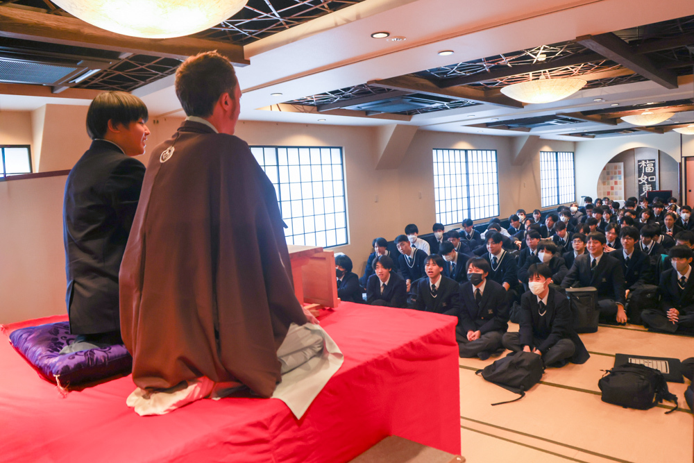 期待に胸を膨らませて迎えた初日は、日本の奥深い伝統芸能である能と落語の鑑賞・体験でした。 当初は関心を持っていなかった生徒も少なくありませんでしたが、実際に演者の方々の話を聞き、その世界に触れることで、奥深い魅力と面白さに引き込まれていきました。日本の文化に対する理解を深めるとともに、生徒たちの世界観を大きく広げる貴重な経験となりました。