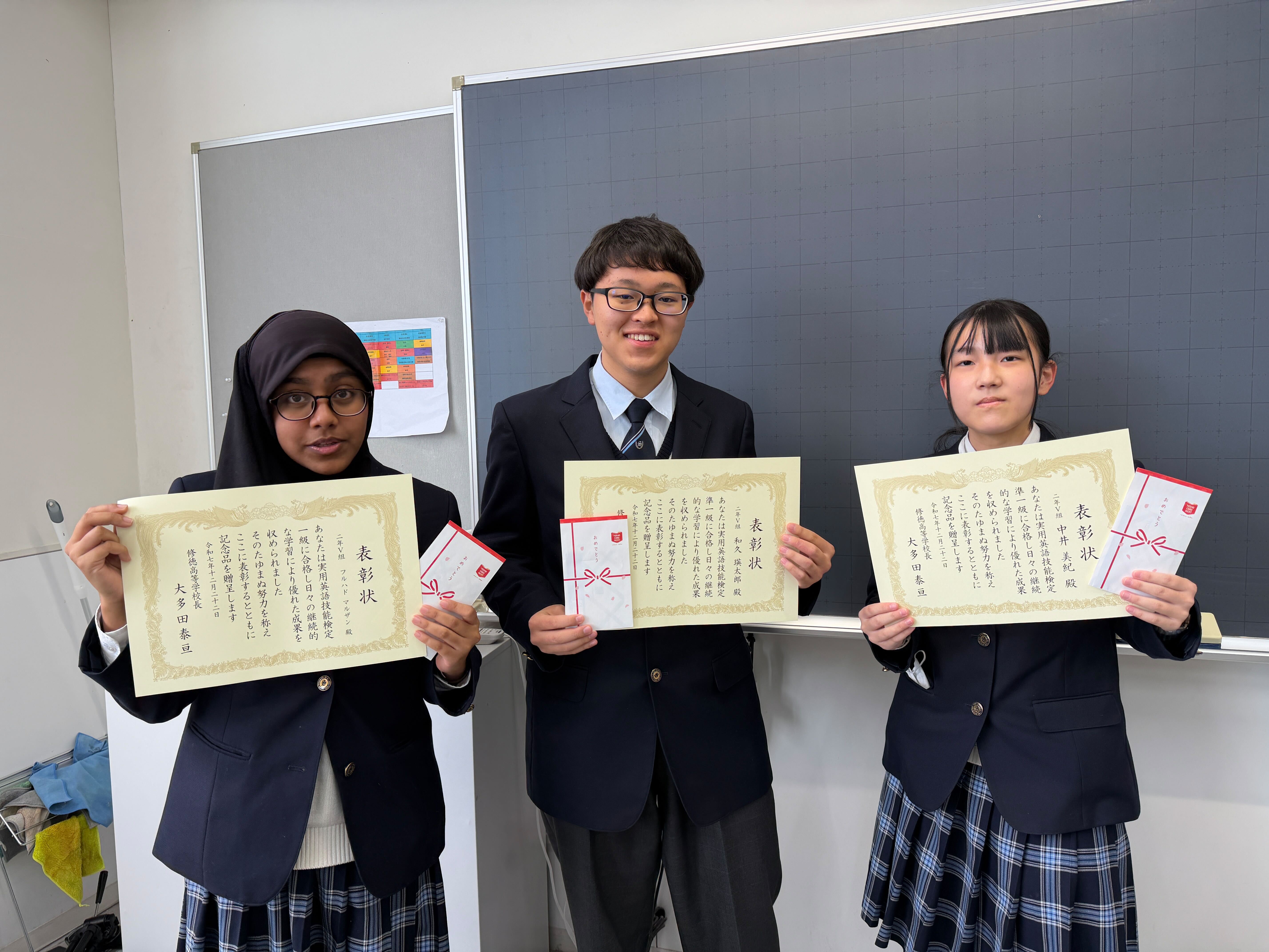 本日は生徒会が中心となって英検上級取得者の表彰も行いました。中学生で2級、高校生も準1級取得者及び2級取得者が急増しています。これからも生徒の皆さんの頑張りに期待してます。