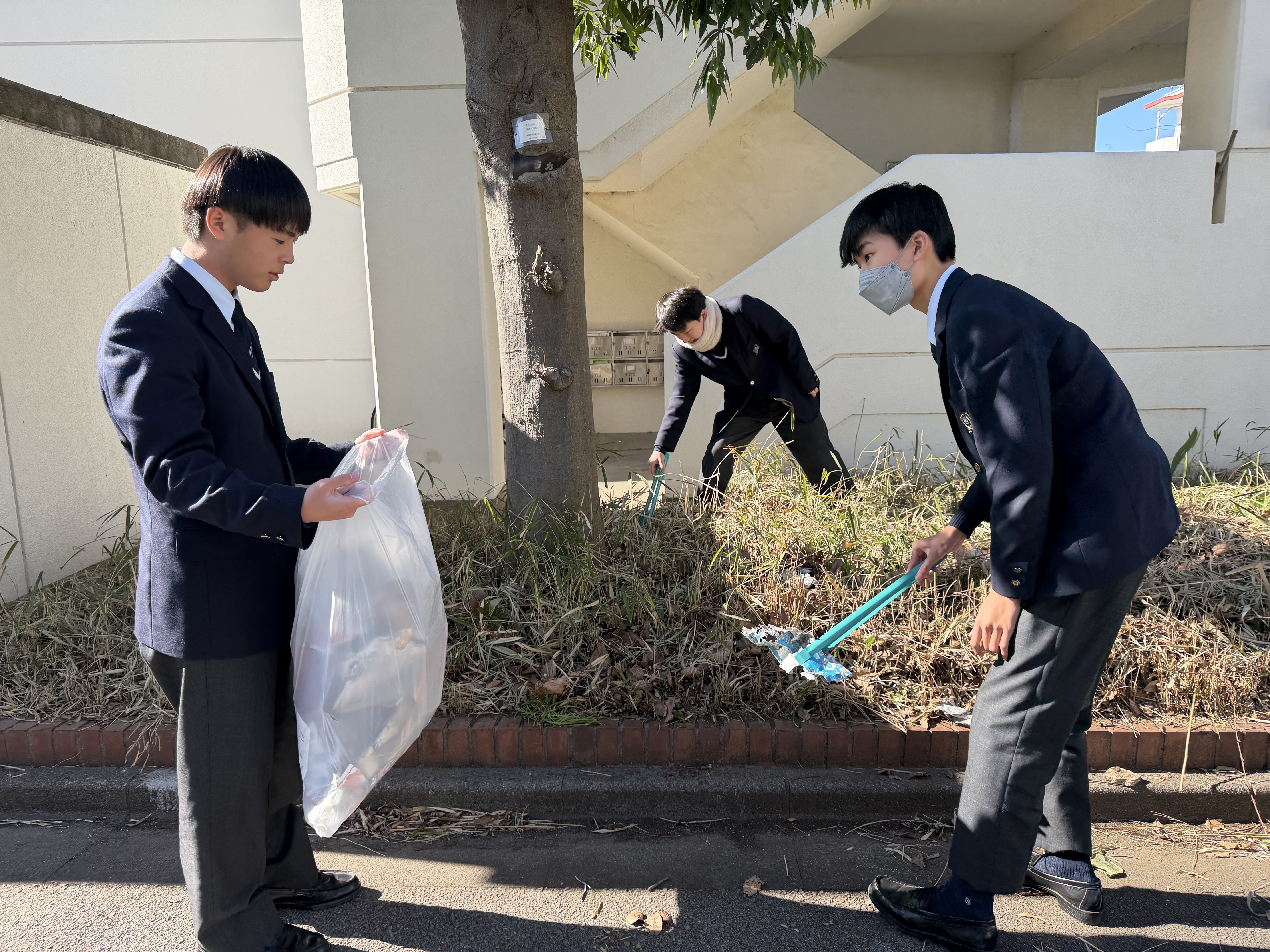 本日、地域清掃を実施しました。いつも使っている通学路や、日頃からお世話になっている近隣の皆さまへ感謝の気持ちを込めて、みんなで一生懸命ゴミ拾いに取り組みました。 実際にやってみると「意外とゴミが多いんだな……」と驚いた生徒も多かったようです。清掃やマナーの大切さを、肌で感じる貴重な機会となりました。 今回の活動で見つけた「気づき」を大切に、これからの学校生活でも一歩ずつ成長していってほしいと思います。